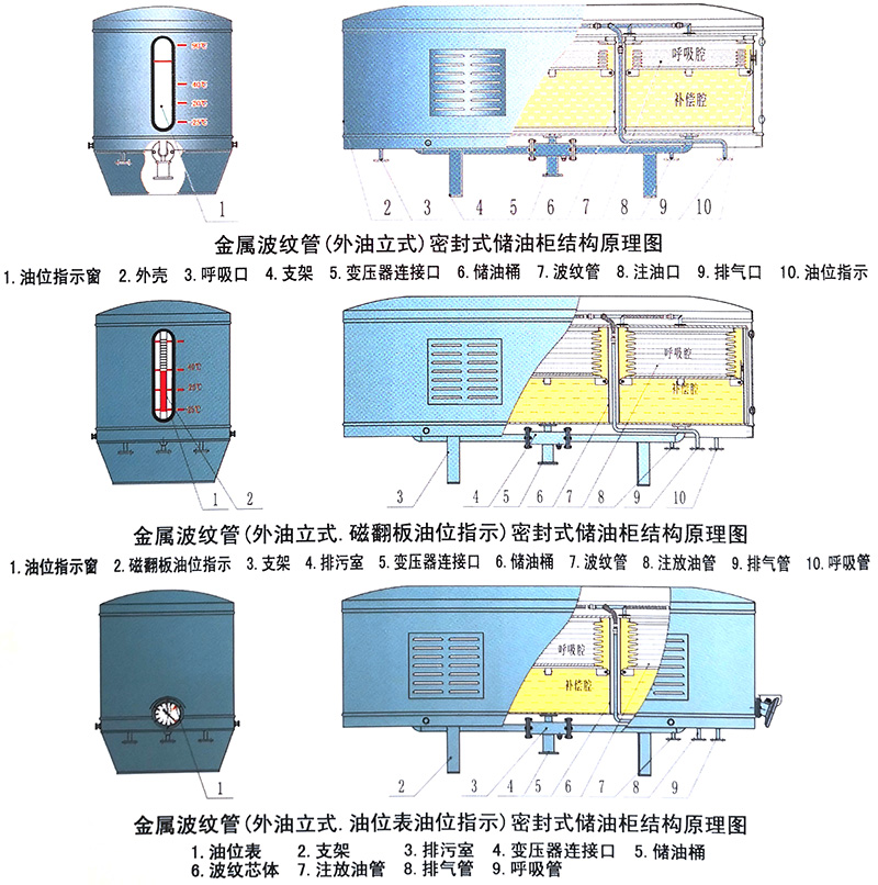 金屬波紋管(外油立式)密封式儲(chǔ)油柜